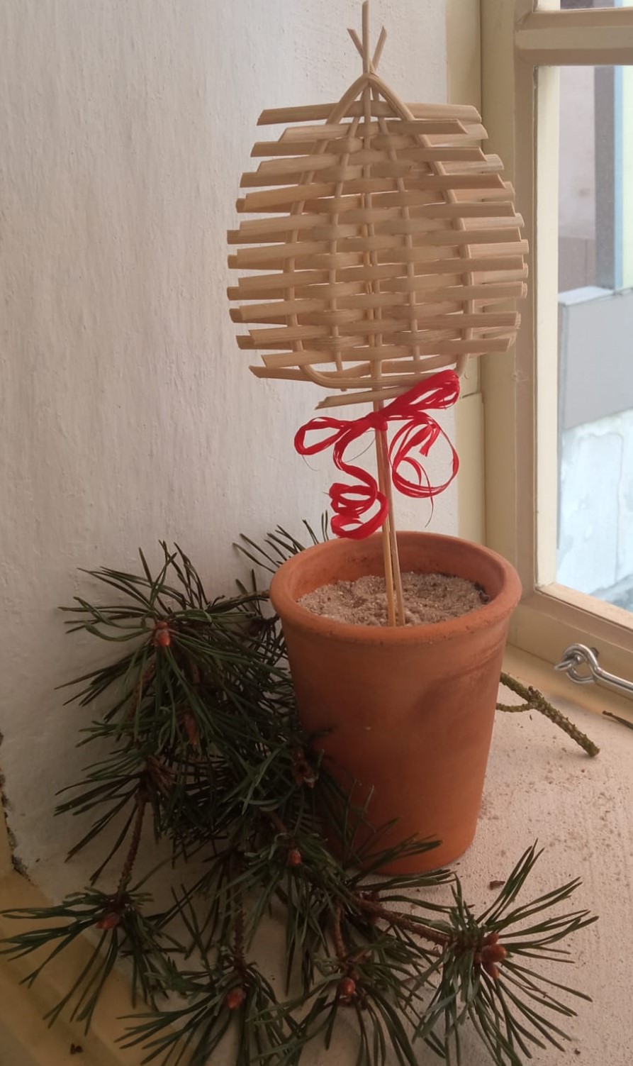 Děti si vytvoří jednoduchý stromeček z pedigu vyplétaný plátnovou vazbou. Pedig (známý také jako ratan nebo rákos) je čistě přírodní materiál pro pletení výrobků z proutí.