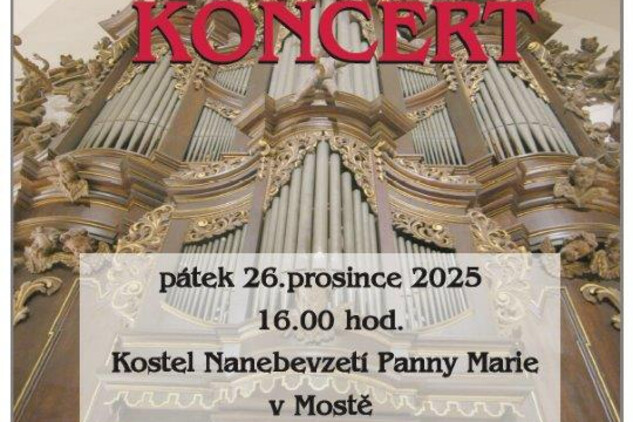 Tradiční vánoční varhanní koncert, konaný  v kostele Nanebevzetí Panny Marie v Mostě, pořádá Drahoslav Rieger.   Vstupenky bude možné zakoupit v pokladně kostela dne 26. 12. 2025 od 15:00 - platba pouze v hotovosti.